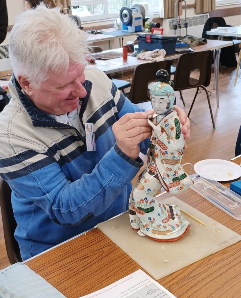 Katie-Jo, our musical instrument specialist, doubles as a Ceramic object repairer when there are no instruments to be repaired.